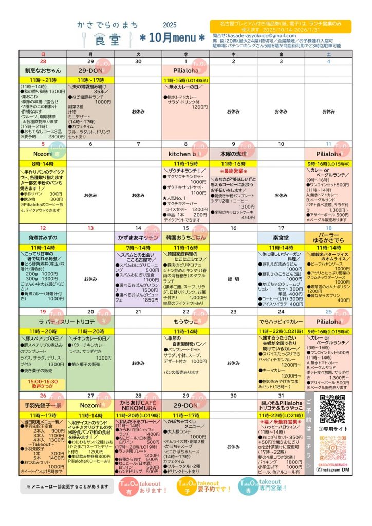 「名古屋プレミアム付き商品券」が10/14から実施されます。かさでらのまち食堂も参加店舗となります!